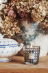 The Manhattan scented candle is poured in a glass that bears a platinum and navy blue screen-printed design inspired by the art deco architecture of the Chrysler building.